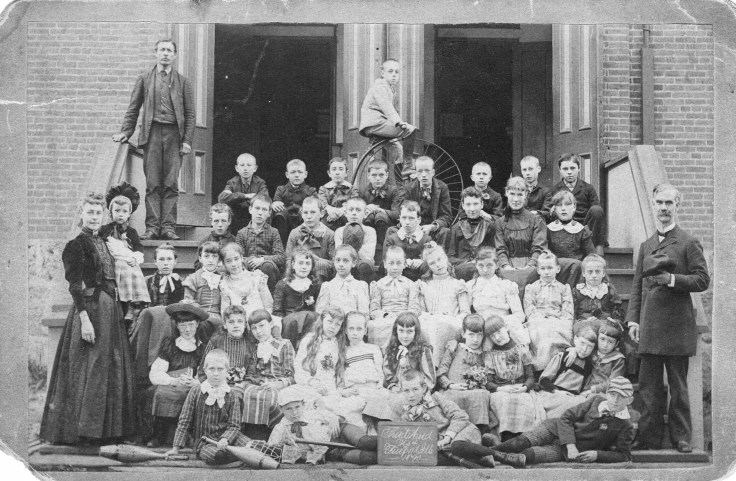 Freeport, Illinois 3rd Ward No. 4 School Class Photo 1890. Emma Schermack, aunt of Dorothy Blumenstiel Jarrell, attended this class. Note the student on the penny-farthing bike in the back row. #falknerjarrell #schermack_genealogy #freeportillinois #pennyfarthing #familypictures #familyhistory #genealogy #genealogyphoto