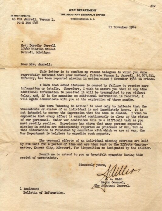 Vernon Lee Jarrell – WWII Missing in Action in France