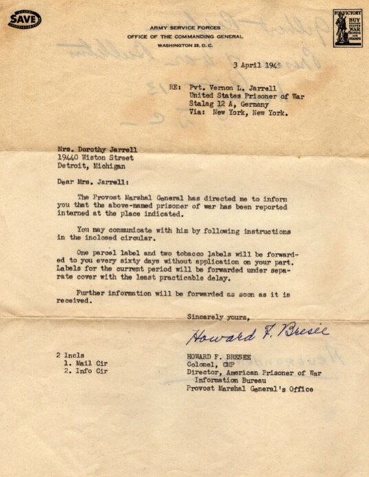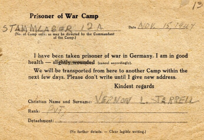 Vernon Lee Jarrell – Prisoner of War in Germany