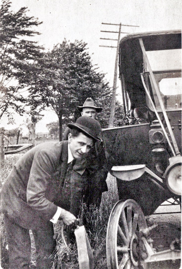 John William Blumenstiel changing car tire, circa 1915. He was the father of Dorothy Blumenstiel Jarrell. #falknerjarrell #blumenstielgenealogy #familyhistory #genealogy #familyphotos #ancestry #history #knowyouroots #antiquephotograph #vintagephotography #oldphotos #oldphoto #ancestor #antiquephoto #genealogyresearch #familytree #familyhistorian #traceyourroots #genealogia #familyarchives #detroit #michigan #blumenstiel #oldcar #oldcars #vintagecar #tires #tyres