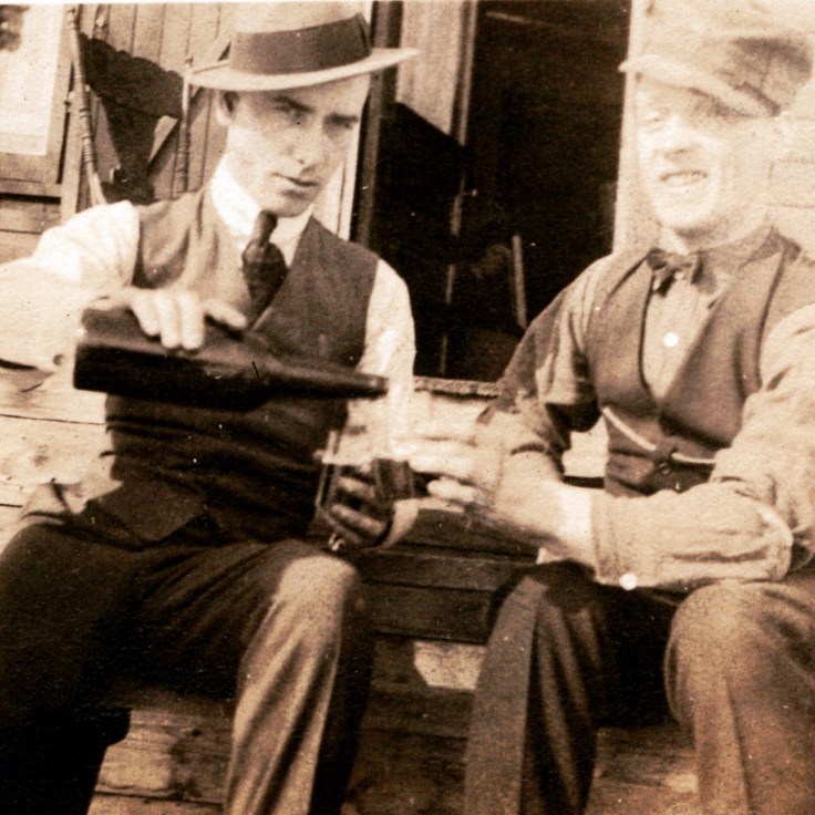 The Carney Brothers Sharing a drink (Circa 1920). Left to right: Frank Carney and Thomas Gilmore Carney. They were brothers to my paternal grandmother, Agnes Carney Falkner and my great-uncles. The photo was likely taken in Port Arthur, Ontario, Canada where the family immigrated in 1910-1915 from Widnes, Lancashire, England. #falknerjarrell #ancestors #familyhistory #genealogy #genealogyphoto #ancestry #history #antiquephotograph #family #vintagephotography #oldphotos #oldphoto #ancestor #drinking #beer #genealogyresearch #geneabloggers #oldphotograph #findingroots #carneygenealogy #carney #falknergenealogy #falkner #brothers #canada #portarthur #ontario #thunderbay #thunderbayontario #widnes