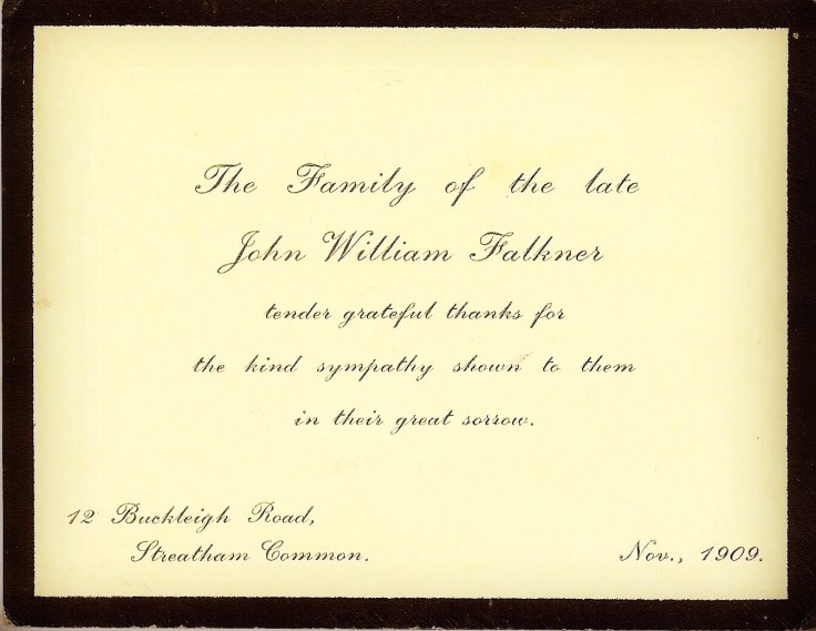 Memorial card for John William Falkner, my great-great grandfather (1909). This was sent to me by a descendant of a servant in his household, who thought well of my great-great grandparents and attended their memorials, long after she had left their employ. John was a successful builder in Victorian London, who founded the firm J.W. Falkner and Sons. His final residence was “Clovelly”, at 12 Buckleigh Rd., Streatham Common. #falknerjarrell #jwfalknerandsons #london #familyhistory #genealogy #genealogyphoto #falknergenealogy #englishhistory #cityoflondon #familyphoto #london🇬🇧 #londoncityworld #londonphotography #london #falkner #jwfalkner #oldbuildings #streatham #streathamcommon #croydon #memorial #death #memorialcard #deathcard #funeral #funeralcard #victorianlondon #victorian #edwardian