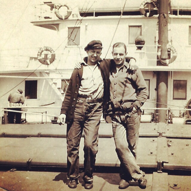 Thomas Gilmore Carney (right) and friend. Great Lakes Seamen (Circa 1920). Thomas was brother to my paternal grandmother, Agnes Carney Falkner and my great-uncle. Based on family photographs, he was on the crew of a Great Lakes ship, S.S. W.H. McGean. The photo was likely taken in Port Arthur, Ontario, Canada where the family immigrated in 1910-1915 from Widnes, Lancashire, England. #falknerjarrell #ancestors #familyhistory #genealogy #genealogyphoto #ancestry #history #antiquephotograph #freighter #gaynotgay #oldphoto #ancestor #greatlakes #genealogyresearch #sailor #oldphotograph #ship #findingroots #falknergenealogy #carneygenealogy #carney #canada #portarthur #ontario #thunderbay #thunderbayontario #widnes #gay #gaypride #gayornot