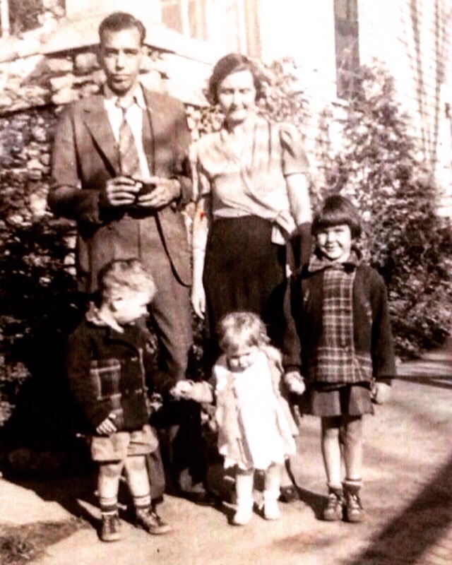 Vernon Lee and Dorothy Blumenstiel Jarrell and Children (early 1940s). Children, left to right: John William Jarrell, Mary Ann “Cookie” Jarrell Falkner (my mother) and Dolores Jarrell Roy. Taken in front of the house of Alfred and Grace Schermack on Winston St., Detroit, Michigan. #falknerjarrell #familyhistory #genealogy #familyphotos #ancestry #history #knowyouroots #family #vintagephotography #oldphotos #oldphoto #ancestor #genealogyresearch #geneabloggers #familytree #familyhistorian #findyourroots #traceyourroots #genealogia #familyarchives #jarrellgenealogy #jarrell #ancestors #lovefamilyhistory #lovehistory #detroit #detroithistory #michigan #falknergenealogy #falkner