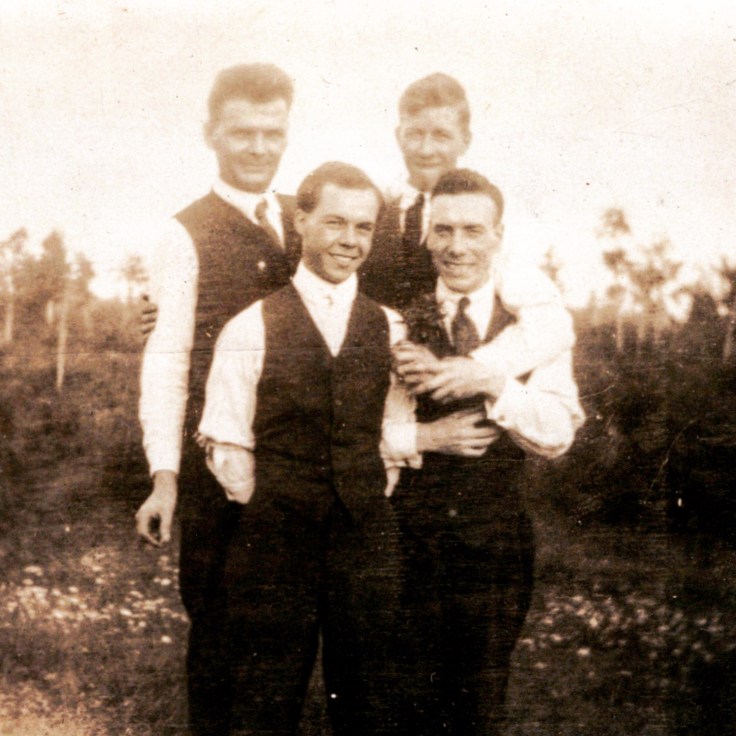 Carney and Chuliner Men. Front row (left to right): Thomas Gilmore Carney, John Francis “Frank” Carney. Back row (left to right): Thomas Chuliner and unidentified. Thomas Chuliner was uncle-by-marriage to the Carneys. #falknerjarrell #ancestors #familyhistory #genealogy #genealogyphoto #ancestry #history #antiquephotograph #family #vintagephotography #1920s #oldphoto #ancestor #genealogyresearch #savinghistory #findingroots #carneygenealogy #carney #chuliner #canada #portarthur #ontario #thunderbay #thunderbayontario #chulinergenealogy #brothers #nephews #men #meninsuits #meninshirts