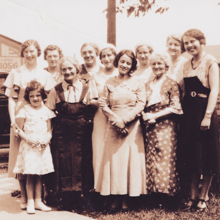 Group photo including my great-grandmother, Julia Grady Carney, in the print dress in front row, at right. She immigrated from Widnes, Lancashire, UK to Canada about 1911. The photograph was likely taken in Port Arthur, Ontario, Canada. #falknerjarrell #ancestors #familyhistory #genealogy #genealogyphoto #ancestry #antiquephotograph #family #vintagephotography #oldphotos #oldphoto #ancestor #antiquephoto #genealogyresearch #oldphotograph #savinghistory #findingroots #carneygenealogy #carney #gradygenealogy #grady #greatgrandmother #canada #portarthur #ontario #thunderbay #thunderbayontario #1920s