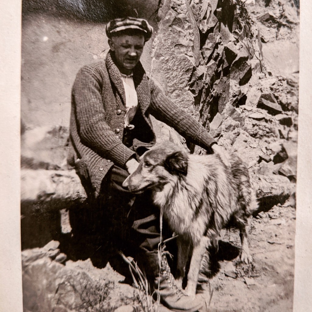 William Blumenstiel and Scotty, in Chilco, Idaho, USA. He was the brother of my great- grandfather, John William Blumenstiel. He and his sister, Helen, moved west from Freeport, Illinois to Chilco, Idaho, and ended up in Spokane, Washington, USA. #falknerjarrell #blumenstielgenealogy #blumenstiel #familyhistory #genealogy #familyphotos #ancestry #history #knowyouroots #antiquephotograph #family #vintagephotography #oldphotos #oldphoto #ancestor #antiquephoto #genealogyresearch #familytree #familyhistorian #findyourroots #chilco #chilcoid #mananddog #dog #dogsofinstagram #dogphoto #doggo #antiquedog #maninhat #meninhats