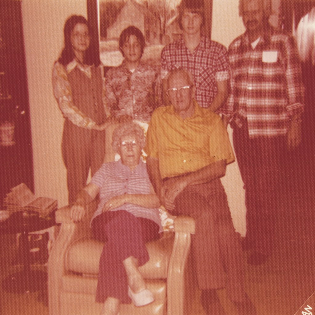 Mr. and Mrs. George Ernest Falkner, Jr. and grandchildren, 1970s. Seated: George Ernest Falkner and Agnes Carney Falkner. Back row, left to right: Kathleen Falkner Rujan, Craig Falkner, Michael Falkner, and Patrick Falkner. #falknerjarrell #falkner #falknergenealogy #carneygenealogy #carney #ancestors #familyhistory #genealogy #genealogyphoto #ancestry #history #knowyouroots #ancestor #genealogyresearch #familytree #familyhistorian #findyourroots #traceyourroots #genealogia #familyarchives #oldphotograph #savinghistory #findingroots #redford #redfordmichigan #michigan #grandfather #grandparent #grandchildren #3generations
