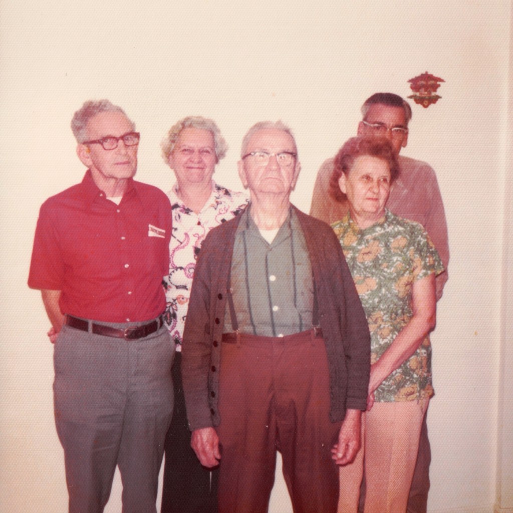 My great-grandfather, John William Blumenstiel (center), with his daughters and their spouses. Left to right: Walter Holmes, Margaret Blumenstiel Holmes, John William Blumenstiel, Dorothy Blumenstiel Jarrell, and Vernon Lee Jarrell. This likely dates to the early 1970s. #falknerjarrell #blumenstielgenealogy #blumenstiel #jarrellgenealogy #jarrell #holmesgenealogy #holmes #familyhistory #genealogy #familyphotos #ancestry #history #knowyouroots #antiquephotograph #family #vintagephotography #oldphotos #oldphoto #ancestor #antiquephoto #genealogyresearch #familytree #familyhistorian #findyourroots #traceyourroots #familyarchives #michigan #siblings #grandmother #fatheranddaughter