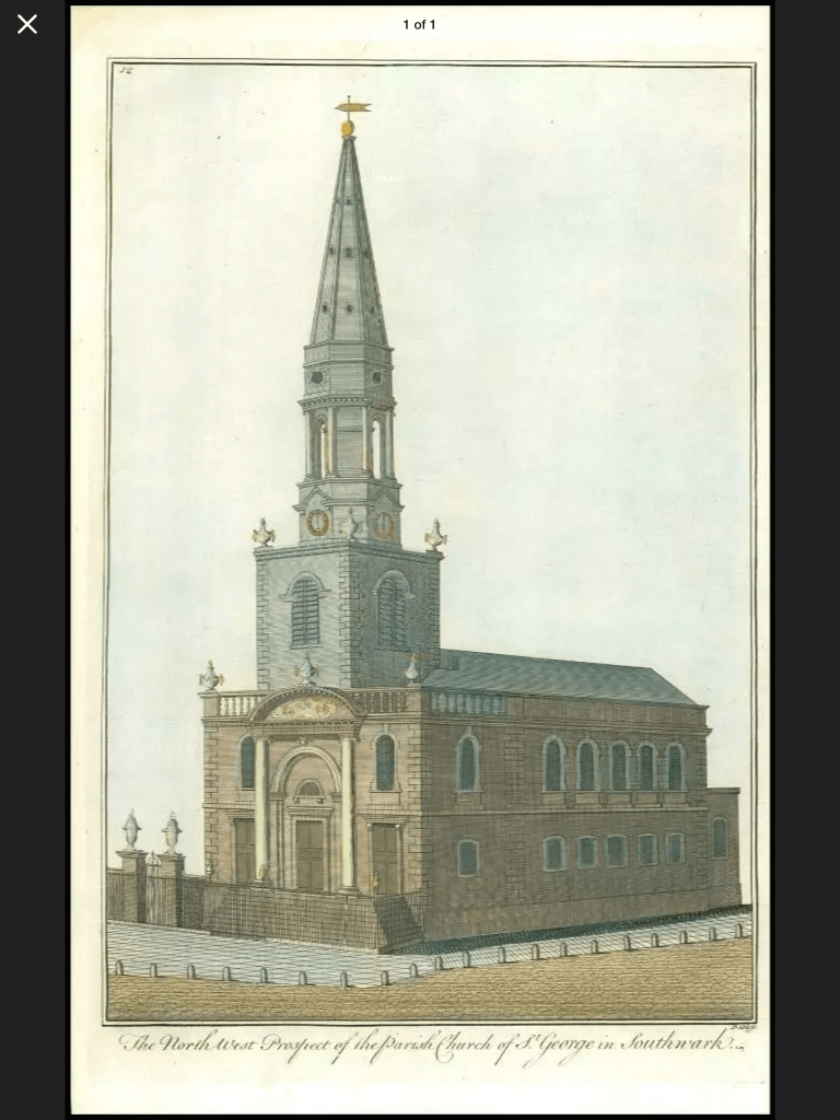 Parish church of St. George the Martyr in Southwark, Surrey, UK (present day London). My great-great grandparents, John William Falkner and Emma Elizabeth Beach, were married in this parish 4 March 1865. #falknerjarrell #falknergenealogy #falkner #familyhistory #familypictures #genealogy #london #londonhistory #southwark #southwarklondon #england #england🇬🇧 #oldphotos #falkner #oldphoto #ancestors #ancestor #stgeorge #stgeorgesouthwark #oldchurch #londonchurch #surrey