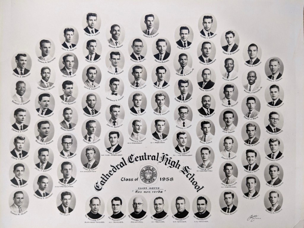 Patrick Ernest Falkner (my father) and his 1958 graduating high school class, Cathedral Central High School in Detroit, Michigan, USA. He is in the center, third row down. I love that everyone is labelled, because people in group photos can be hard to identify. If anyone has family members in the photo, you can go to my family history website, http://falknerjarrell.com and copy the photo. #falknerjarrell #ancestors #familyhistory #genealogy #genealogyphoto #ancestry #history #knowyouroots #antiquephotograph #vintagephotography #oldphotos #oldphoto #ancestor #antiquephoto #genealogyresearch #oldphotograph #savinghistory #findingroots #falknergenealogy #falkner #detroit #1958 #schoolphoto #classphoto #catholicschool #cathedralcentral #cathedralcentralschool #highschoolgraduation #highschool #classof1958