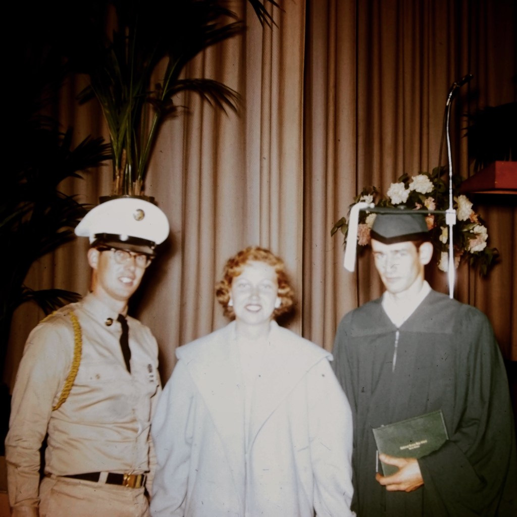 My father, Patrick Ernest Falkner (right) with his brother, Ronald and sister-in-law, Shirley, at his high school graduation in 1958. Scanned from a Kodachrome color slide. Detroit, Michigan, USA. #falknerjarrell #falknergenealogy #falkner #ancestors #familyhistory #genealogy #genealogyphoto #ancestry #knowyouroots #family #vintagephotography #genealogyresearch #vintagephoto #findingroots #children #1940s #savefamilyphotos #savefamilymemories #detroit #detroitmichigan #michigan #familyphotography #familyphotos #brother #brothers #kodachrome #graduation #highschoolgraduation #cathedralcentral #catholicschool