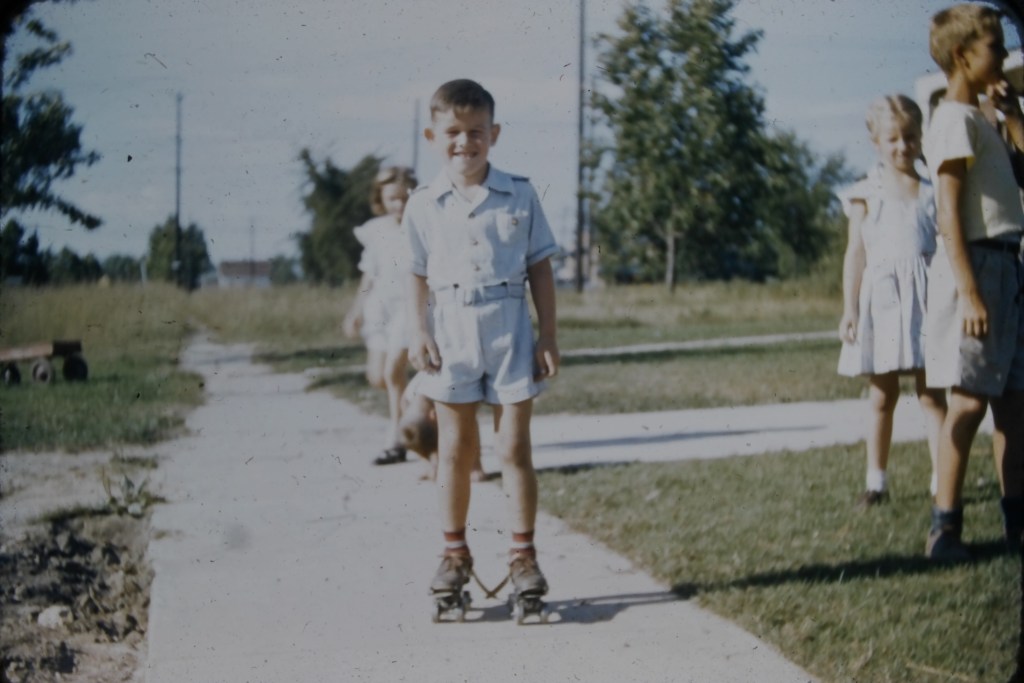 My father, Patrick Ernest Falkner, on roller skates in the 1940s. He was quite good on skates and I remember him gliding effortlessly during our school and scouting skating parties. from a Kodachrome color slide. Redford, Michigan, USA. #falknerjarrell #falknergenealogy #falkner #ancestors #familyhistory #genealogy #genealogyphoto #ancestry #history #knowyouroots #family #vintagephotography #genealogyresearch #vintagephoto #savinghistory #findingroots #children #1940s #savefamilyphotos #savefamilymemories #redfordmi #redfordmichigan #michigan #familyphotography #familyphotos #father #kodachrome