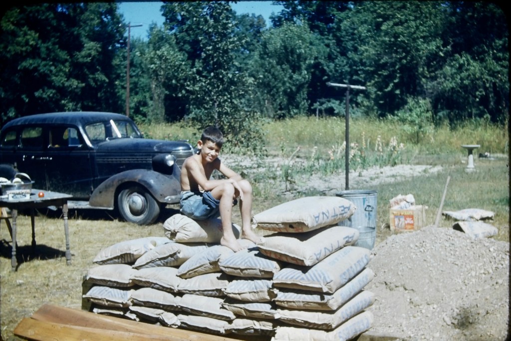 My father, Patrick Ernest Falkner, sitting on bags of concrete in the 1940s. Dad looks somewhat mischievous. It reminds me of a story one of his childhood friends told me about Dad setting his family’s backyard on fire and running to get his friends to help put out the fire. Scanned from a Kodachrome color slide. Redford, Michigan, USA. #falknerjarrell #falknergenealogy #falkner #ancestors #familyhistory #genealogy #genealogyphoto #ancestry #history #knowyouroots #family #vintagephotography #genealogyresearch #vintagephoto #savinghistory #findingroots #children #1940s #savefamilyphotos #savefamilymemories #redfordmi #redfordmichigan #michigan #familyphotography #familyphotos #father #kodachrome #concrete #construction