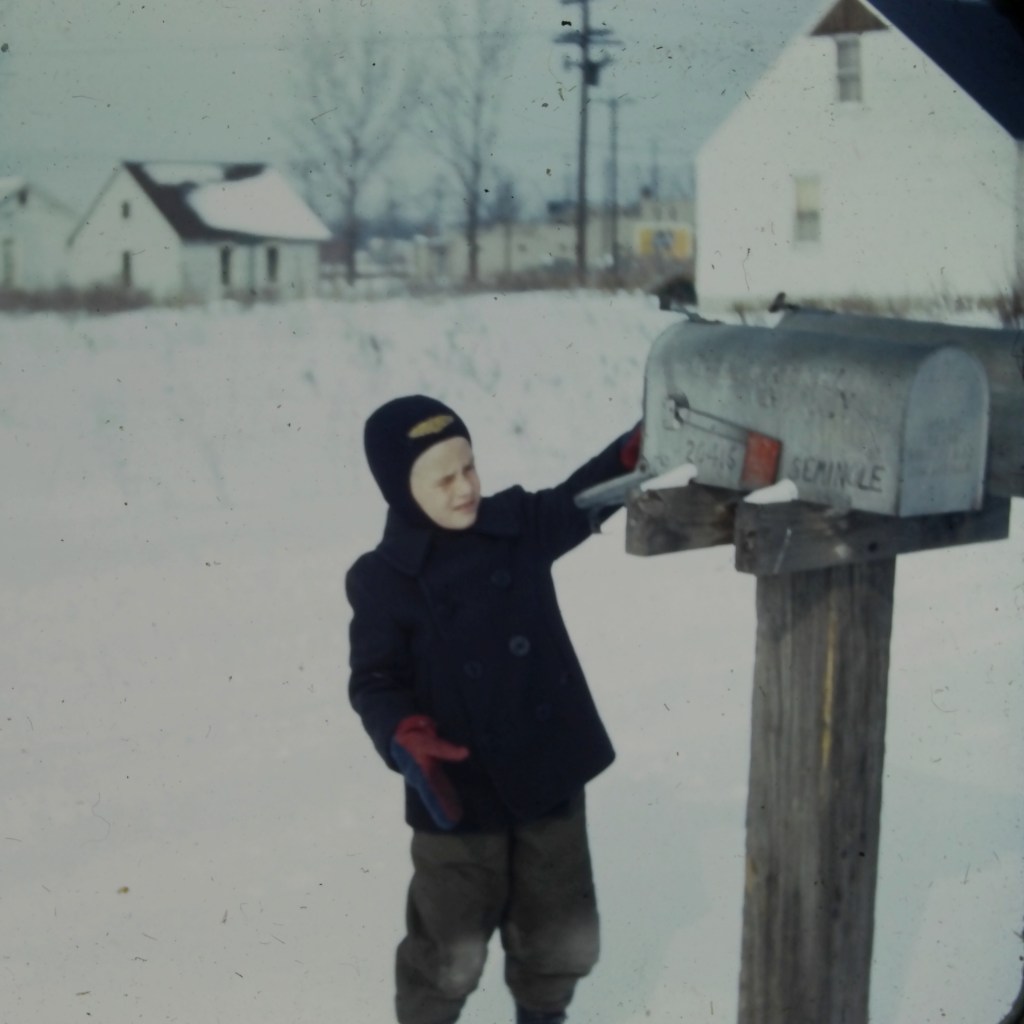My father, Patrick Falkner, Getting the mail on Seminole St., Redford, Michigan, USA in the 1940s. Scanned from a Kodachrome color slide. Redford, Michigan, USA. #falknerjarrell #falknergenealogy #falkner #ancestors #familyhistory #genealogy #genealogyphoto #ancestry #history #knowyouroots #family #vintagephotography #genealogyresearch #vintagephoto #findingroots #1940s #savefamilyphotos #redfordmi #redfordmichigan #michigan #familyphotography #familyphotos #kodachrome #snow #shovelingsnow #snowday #winter #bundledup #mailbox
