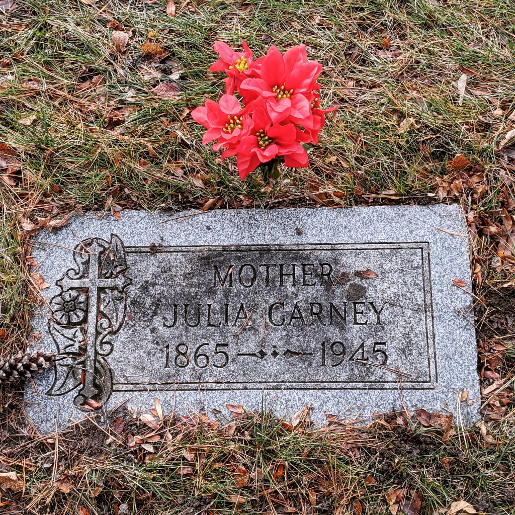 Headstone of Julia Grady Carney, my great-grandmother. Julia immigrated from Widnes, Lancashire, UK to Canada about 1911. The family re-located to Detroit, Michigan, USA in the late 1920s. Holy Sepulchre Cemetery, Southfield, Michigan, USA #falknerjarrell #ancestors #familyhistory #genealogy #genealogyphoto #ancestry #antiquephotograph #family #ancestor #antiquephoto #genealogyresearch #oldphotograph #savinghistory #findingroots #carneygenealogy #carney #gradygenealogy #grady #falkner #greatgrandmother #canada #portarthur #ontario #thunderbay #thunderbayontario #1920s #holysepulchre #holysepulchrecemetery #southfieldmi