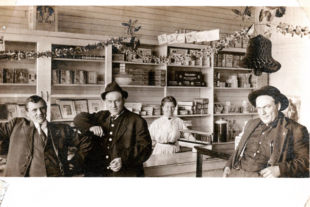 Helen Blumenstiel and her brother, William (far left) with customers in the Chilco Mercantile Company (circa 1910s), located in Chilco, Idaho, USA. They were the brother and sister of my great- grandfather, John William Blumenstiel. They moved from Freeport, Illinois, USA to Idaho, and finally ended up in Spokane, Washington, USA. #falknerjarrell #blumenstielgenealogy #blumenstiel #familyhistory #genealogy #familyphotos #ancestry #knowyouroots #antiquephotograph #vintagephotography #oldphotos #oldphoto #ancestor #antiquephoto #genealogyresearch #familytree #familyhistorian #findyourroots #spokane #spokanedoesntsuck #spokanewa #spokanewashington #chilco #idaho #chilcoidaho #freeportil #oldstore #generalstore #mercantile #brotherandsister