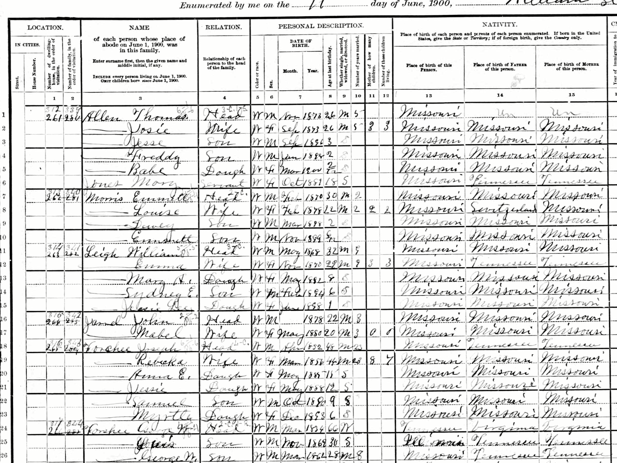 My great-grandparents, John Jarrell and Mabel Forshee Jarrell appear in the 1900 U.S. Census for Desloge, St. Francois County, Missouri. Many other Forshees and Jarrells appear on the same page. They were the parents of my maternal grandfather, Vernon Lee Jarrell. #falknerjarrell #jarrellgenealogy #jarrell #familyhistory #familyphoto #genealogy #missouri #missourihistory #michiganhistory #oldphotos #detroithistory #detroit #familyphotos #familyphotography #ancestor #ancestors #ancestry #leadmine #leadbelt #autoworker #greatgrandparents #greatgrandfather #greatgrandpa #brothers #desloge #deslogemissouri