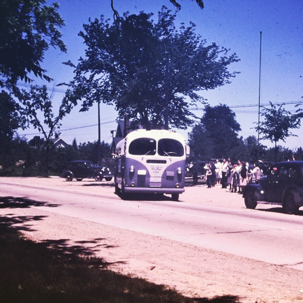 The bus departs! My grandfather, George Ernest Falkner, Jr. was a Boy Scout troop leader for a trip to Washington D.C. in the late 1940s/early 1950s. They went to the U.S. Capitol and Mount Vernon, with a stop in Gettysburg, Pennsylvania. This is a scan of a Kodachrome slide. #falknerjarrell #falknergenealogy #falkner #redford #redfordmi #familyhistory #genealogy #genealogia #genealogie #généalogie #familyphotos #oldphoto #oldphotos #americanhistory #colonialhistory #colonialamerica #revolutionarywar #generalwashington #mountvernon #georgewashington #georgewashingtonsmountvernon #foundingfather #virginia #kodachrome #kodachromeslide #vintagebus #bustrip #uscapitol #boyscouts #1950s