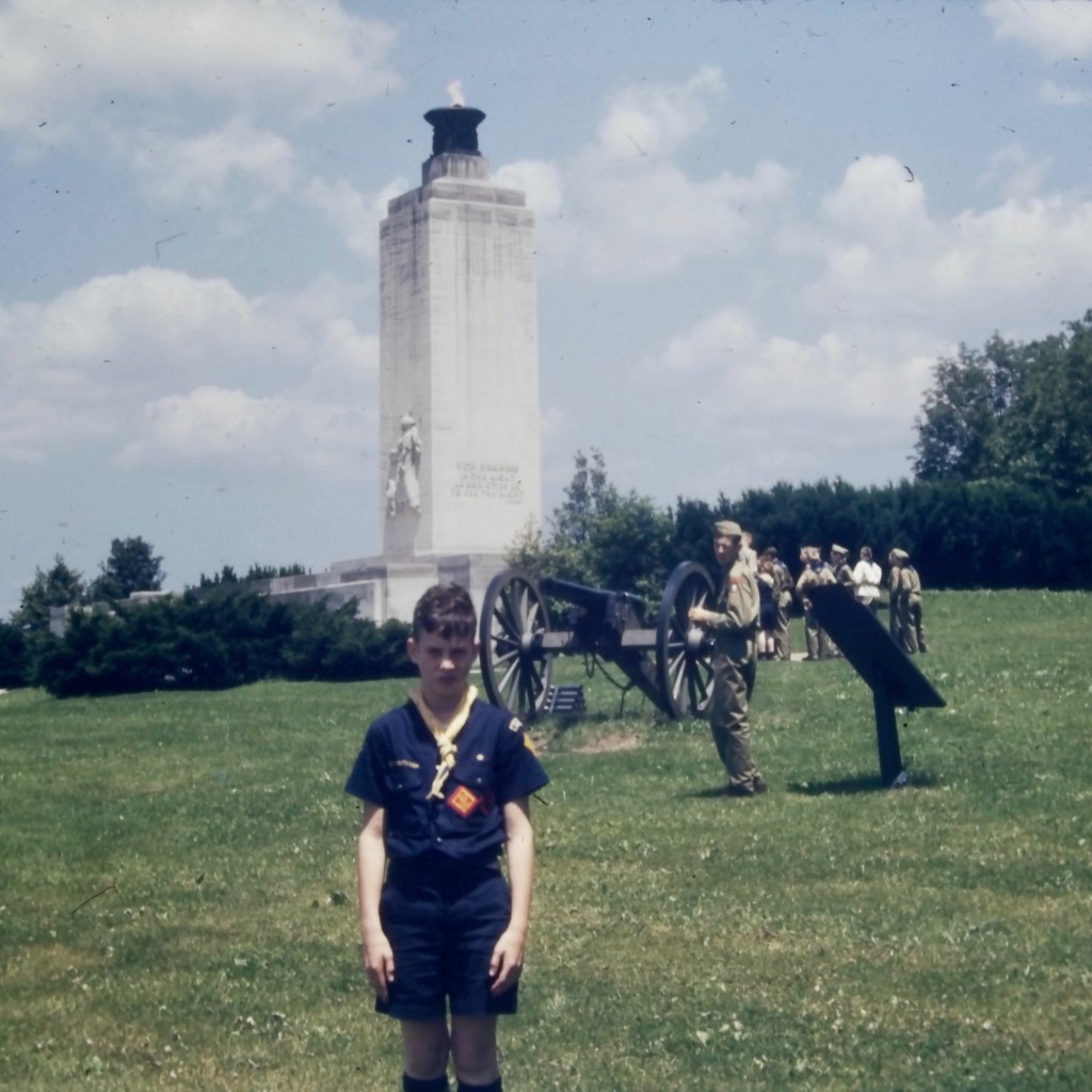 My uncle, Ronald Falkner, at Gettysburg National Military Park in Gettysburg, Pennsylvania. My grandfather, George Ernest Falkner, Jr. was a Boy Scout troop leader for a trip to Washington D.C. in the late 1940s/early 1950s. They went to the U.S. Capitol and Mount Vernon, with a stop in Gettysburg, Pennsylvania. This is a scan of a Kodachrome slide. #falknerjarrell #falknergenealogy #falkner #redford #redfordmi #familyhistory #genealogy #genealogia #genealogie #généalogie #familyphotos #oldphoto #oldphotos #americanhistory #americancivilwar #civilwar #civilwarhistory #gettysburg #gettysburgbattlefield #gettysburgpa #warbetweenthestates #foundingfather #virginia #kodachrome #kodachromeslide #vintagebus #bustrip #uscapitol #boyscouts #1950s