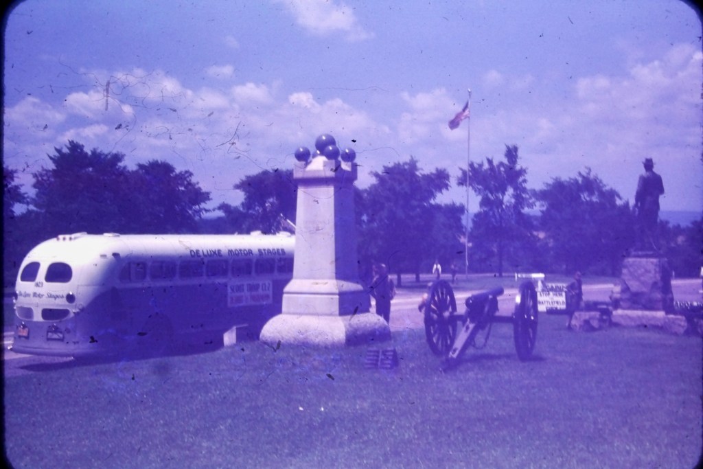 Gettysburg National Military Park in Gettysburg, Pennsylvania. My grandfather, George Ernest Falkner, Jr. was a Boy Scout troop leader for a trip to Washington D.C. in the late 1940s/early 1950s. They went to the U.S. Capitol and Mount Vernon, with a stop in Gettysburg, Pennsylvania. This is a scan of a Kodachrome slide. #falknerjarrell #falknergenealogy #falkner #redford #redfordmi #familyhistory #genealogy #genealogia #genealogie #généalogie #familyphotos #oldphoto #oldphotos #americanhistory #americancivilwar #civilwar #civilwarhistory #gettysburg #gettysburgbattlefield #gettysburgpa #warbetweenthestates #foundingfather #virginia #kodachrome #kodachromeslide #vintagebus #bustrip #uscapitol #boyscouts #1950s